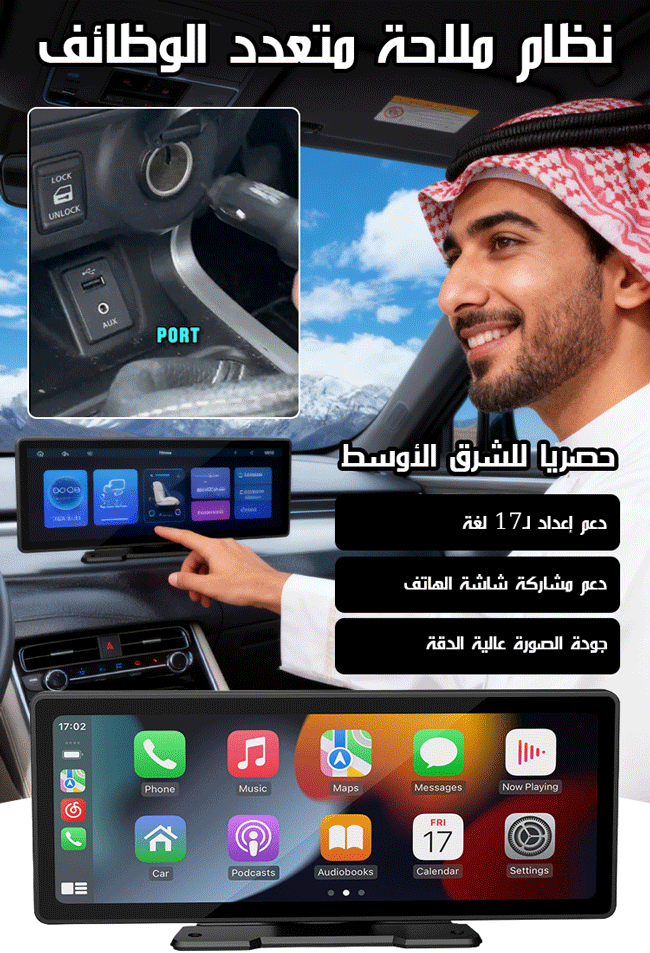 شاشة مركزية مدمجة محمولة ومتعددة الوظائف مع مسجل القيادة وكاربلاي【حصرية للشرق الأوسط】
